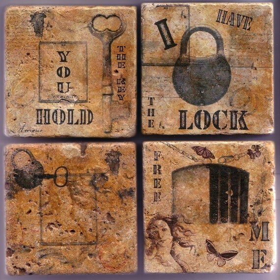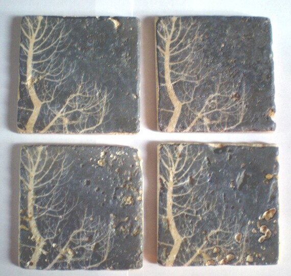 About this artist: "My name is Arianna and I am a freelance graphic designer. My coaster sets and tile works are imported stone, generally marble, with a rough tumbled look. The designs are hand created and hand applied, each one unique. The perfection is in the imperfections - I call my line Roller Coasters!"